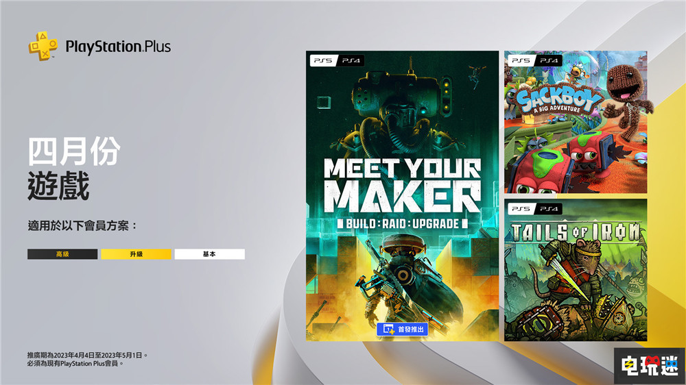 SIE香港今天公開了2023年4月PSN港服PS Plus全檔會員免費遊戲陣容。這個月的港服與歐美服會免陣容相同,一樣的三款遊戲,一樣的平淡。其中包括了PSN國服玩家熟悉的《麻布仔大冒險》PS5與PS4版,擁有十分不錯的美術以及魂like風格的《鋼鐵之尾》PS5與PS4版,同時還有一款全新的後末日題材自設關卡遊戲《遇見造物主》PS5與PS4版本。PS Plus會員玩家可以在2023年4月4日至5月1日期間領取。