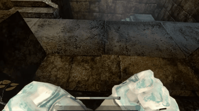 在地上造冰讓跑步途徑的敵人滑倒,出自使用起源引擎的《魔法門:黑暗彌賽亞》
