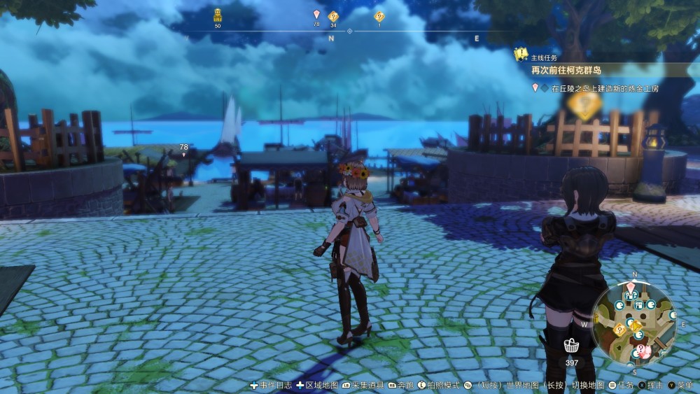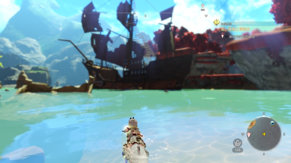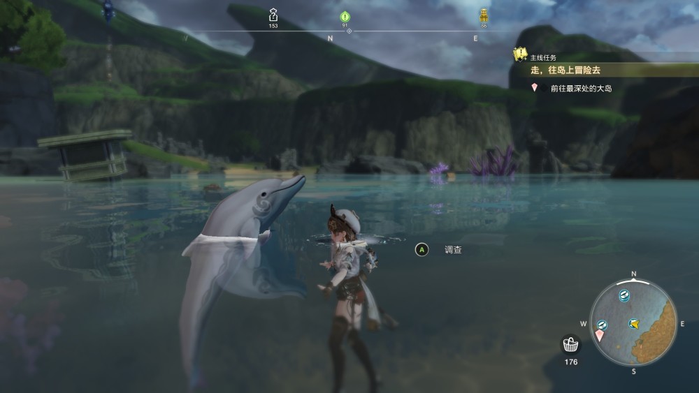 但這種堆砌帶來的臃腫在遊戲中後期得到了補償。當你逐漸上手、慢慢融入這個世界的時候,你會發現本作的設定帶來了前所未有的自由度。消失的空氣牆、廣袤的場景、可以無限暢遊(還能騎海豚)的水域、在所有遊戲內容中存在感很強的鑰匙和鑰匙帶來的、在中後期爽感十足的戰鬥系統——玩家不再是被設定了邊框的幾張線性地圖中的奔跑者,而是實實在在穿行於天地間、為大家排憂解難的鍊金師。