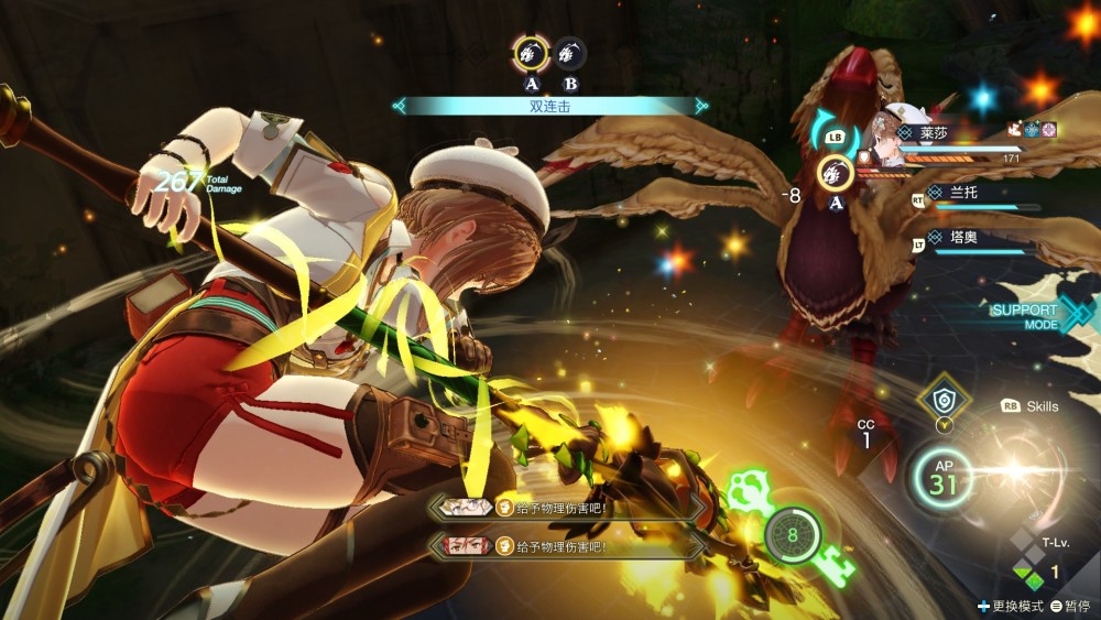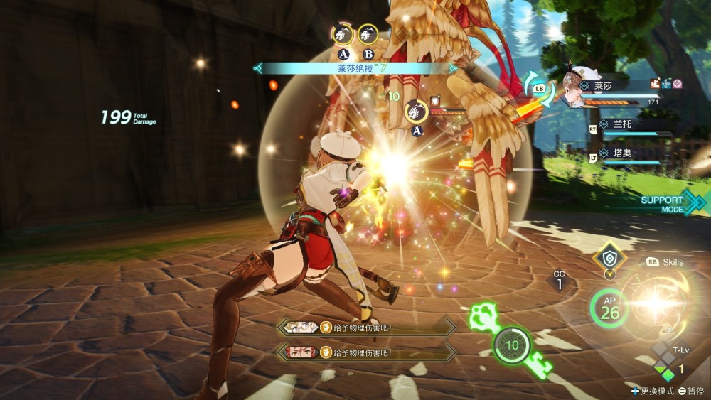 除了翻天覆地的地圖之外,《萊莎3》中改變最大的就是戰鬥了。他們放棄了一直以來使用的回合制模式,採用了“半即時”的戰鬥系統。當然,祖傳的“AP放技能、CC丟道具、通過攻擊積攢戰術等級”這些設定並未改變,只是用另一種形式的WT系統代替了回合。