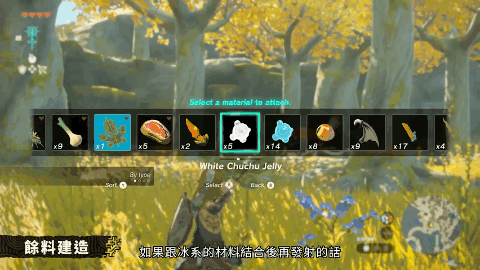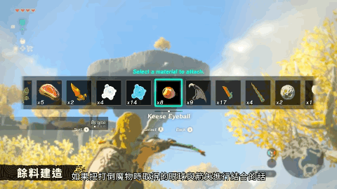 林克可以將武器和武器進行組合,亦或是和身邊的素材進行拼接,獲得更強的武器。