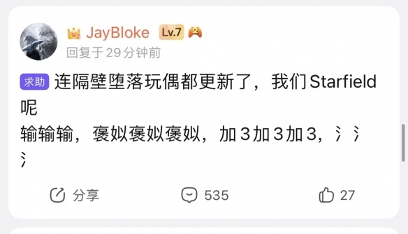 只不過在大夥滿懷期待,希望B社作為“塞爾達殺手”再次發力的時候,《星空》貼吧裡面的情景卻沒那麼歡樂。