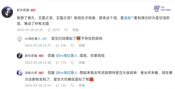 但在嘲笑“星批”的同時,算算時間《王國之淚》還有40來天才能順利發售——好像也沒那麼想笑了,看得見玩不著一樣難受。