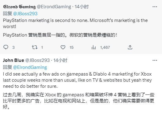 有玩家表示,PS的營銷確實是首屈一指的。近幾周也在電視和網站上看到了更多XGP和《暗黑4》的廣告,由此來看,兩家廠商的營銷力度都開始加大了。還有人稱索尼在廣告投入很多,Xbox應該投入更多才行。