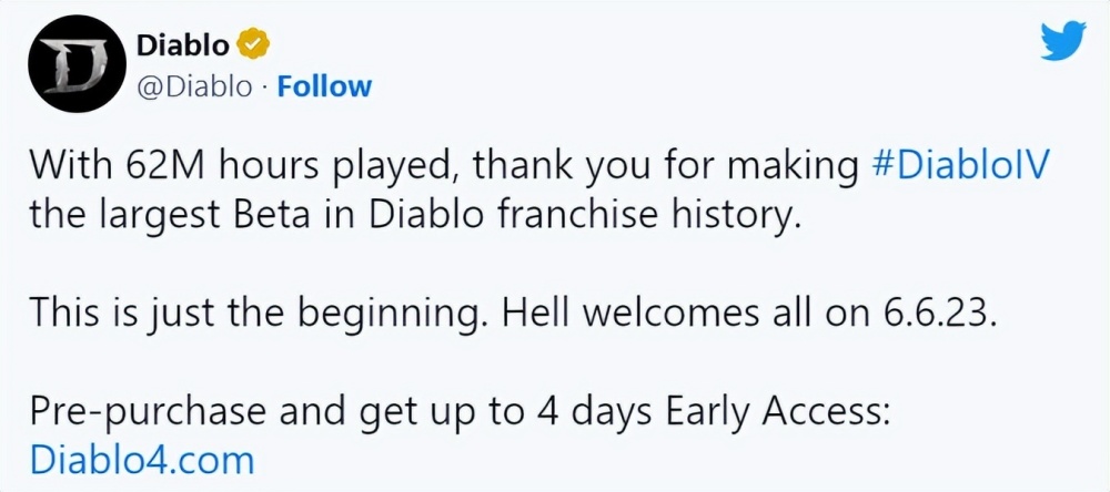 《暗黑破壞神4》的兩輪公測已結束,這次公測被暴雪定義為暗黑史上最大的一次。官方公佈了一些公測資料,並匯成一圖。