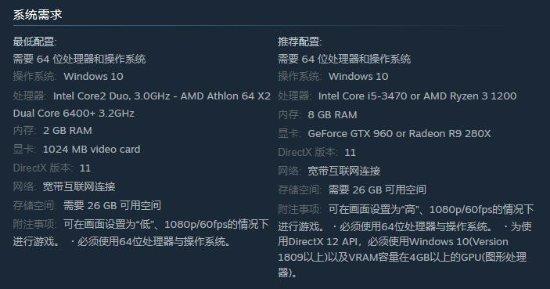 遊戲的PC配置也同時公佈,本作預計將於今年登陸PS5、PS4、Switch、Xbox Series X/S、Xbox One、Steam平臺。遊戲支援簡體中文。