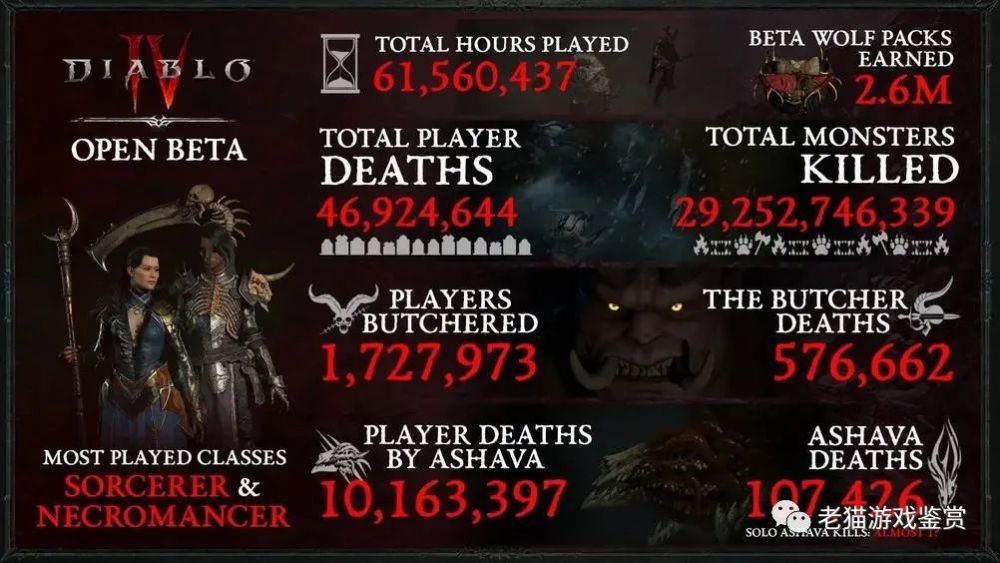 3 月 31 日訊息,暴雪娛樂今天釋出公告,表示《暗黑破壞神 4》測試版重新整理了該系列同期紀錄。公開測試 2 周時間,玩家累計遊戲時間將近 6200 萬小時,大約相當於 7000 年。