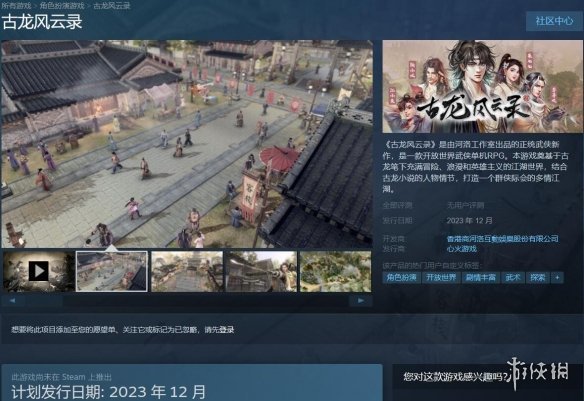 河洛工作室製作人徐昌隆今日公開了與古龍IP委員會合作,獲得全作品授權的武俠單機RPG《古龍風雲錄》。目前該作已經上線Steam頁面,頁面顯示該作將於12月份推出。