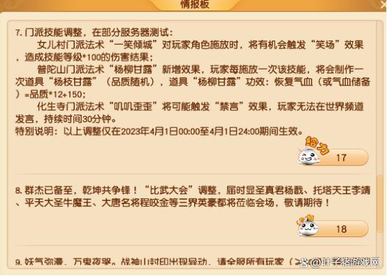 除此之外,女兒村的“一笑傾城”還將觸發“笑場”效果,造成技能等級*100點的傷害結果,化生寺的“唧唧歪歪”還有可能觸發“禁言”效果。