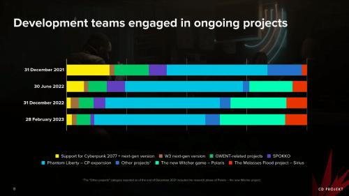 根據CD Projekt Red最新財報顯示,在“正在開發專案”圖表中,DLC往日之影赫然出現在2021年底的開發安排中,其開發資源分配佔比也遠大餘《巫師3次世代版》《2077》次世代更新。