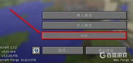 3、啟動遊戲,選擇forge進入遊戲可看到一個新的按鈕“Mods”按鈕,點選進入