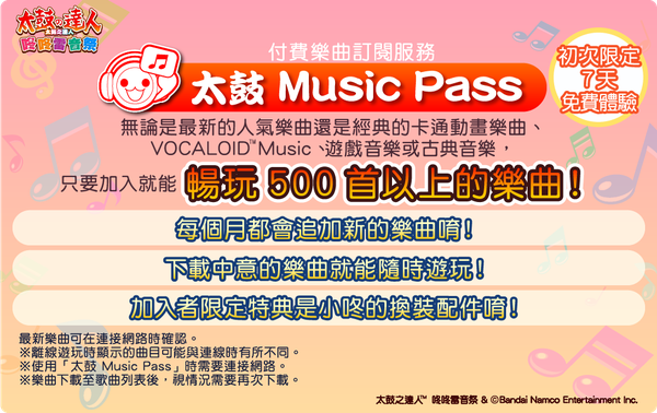 付費樂曲訂閱服務「太鼓 Music Pass」