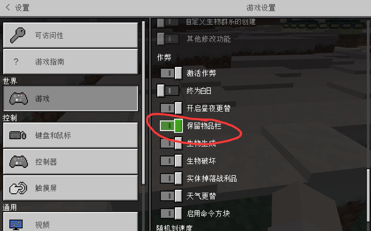 首頁 我的世界 問答 我的世界死亡不落怎麼開? 2022-07-01 玩家去玩家去設置里開啟保留物品欄就可以死亡不掉落了。1,首先玩家需要按ESC進入設置,然後點擊設置。2,接著再點擊左側的游戲,在右側開啟保留物品欄即可死亡不掉落。