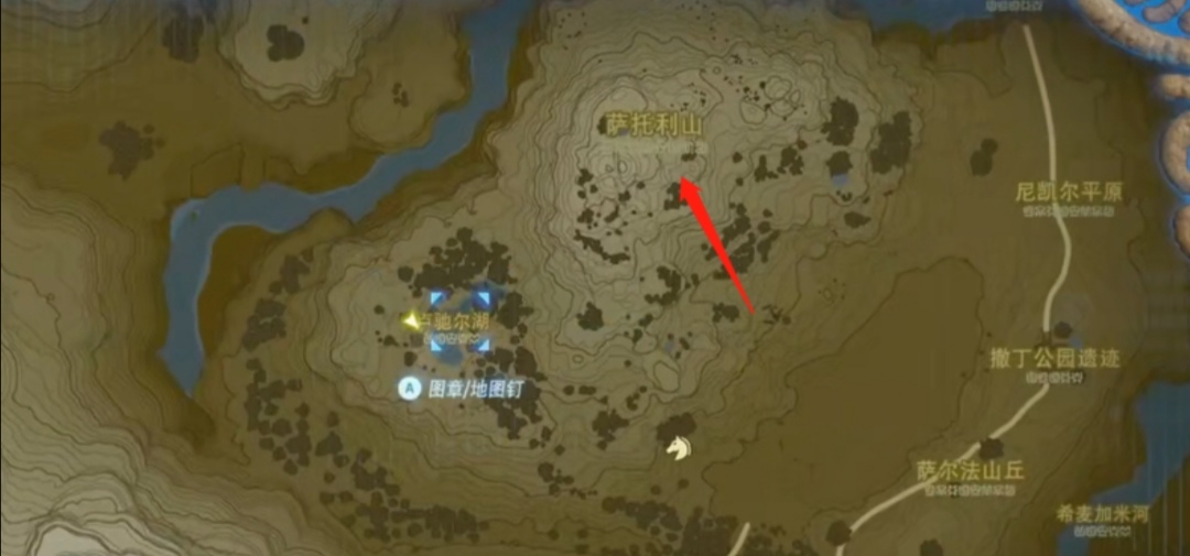 1、薩托利山在泰阿蒙河的南邊,尼凱爾平原的西邊的很大一個區域,玩家打開地圖後,薩托利山地圖位置如下圖所示:
