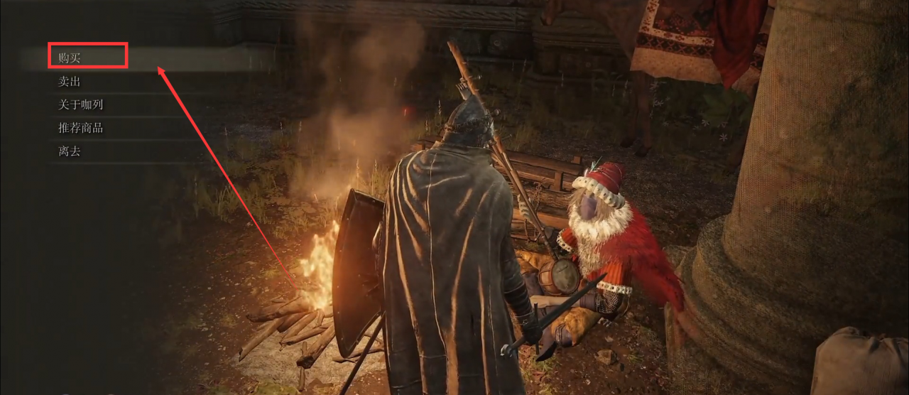 2.在艾雷教堂的篝火旁可以看見一個商人。