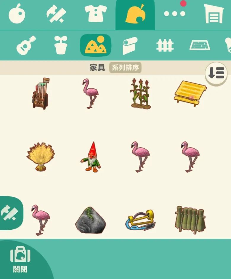 8、此時可以退出進入「背包」頁面,翻到對應的分類目錄下,選擇按系列排序,並將目錄滑到戶外露營相關的傢具處,基本上就可以將傢具的選擇數量縮減至20個以內了。