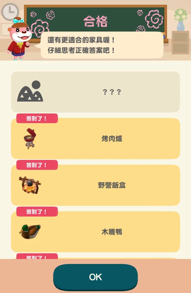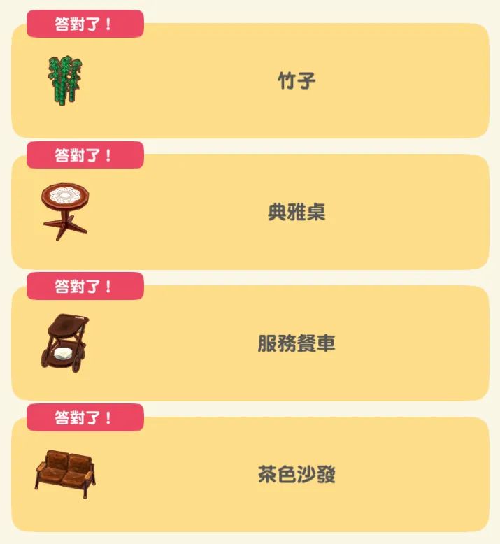 7、對照該風格傢具進行試錯,一般來說只要選擇稀有度較高的傢具,都是可以拿到高分,甚至是3個獎章的。不過如果不是指定傢具,在結果頁面是不會顯示「答對了」的。