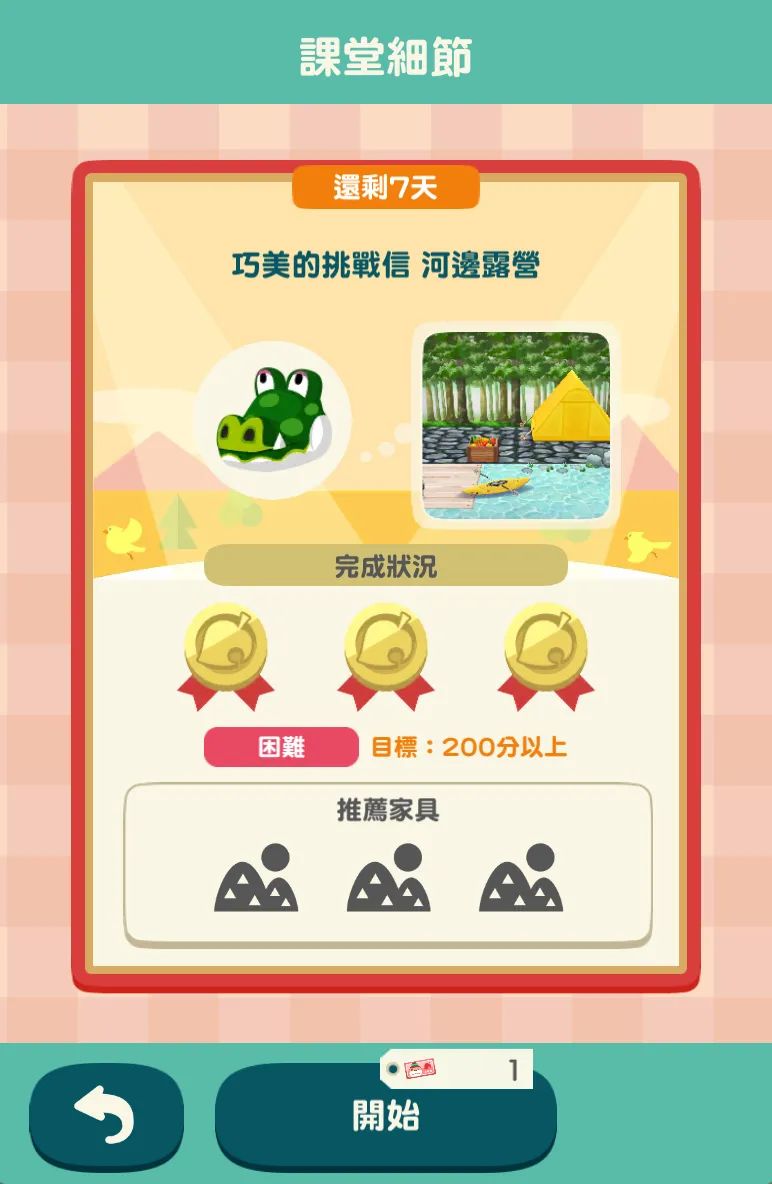 巧美的挑戰信 河邊露營 | 難度:困難 | 目標:200分以上