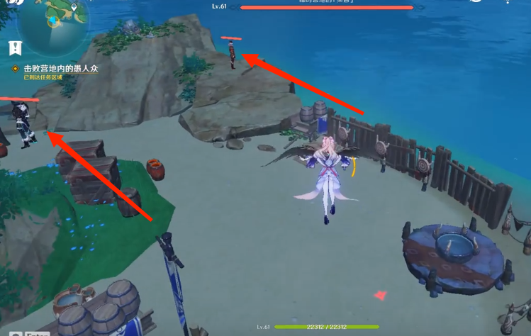 1、首先傳送至錨點,點擊擊敗營地內的愚人眾。先殺水胖子,水胖子是奶媽,會給其他人回血加攻擊。