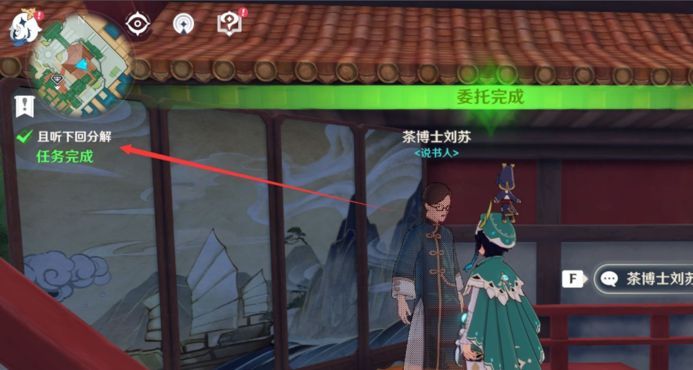 5、點擊完成與茶博士劉蘇對話劇情,最後即可完成且聽下回分解任務。