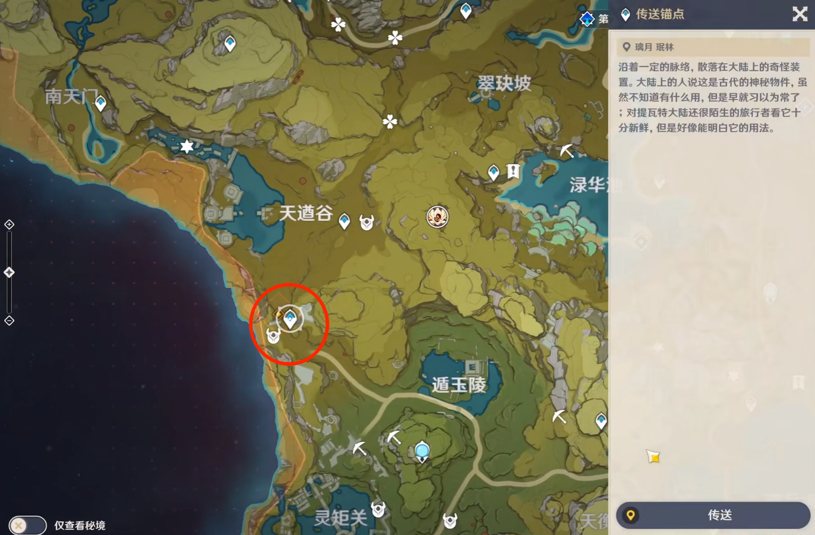 2、傳送至璃月珉林