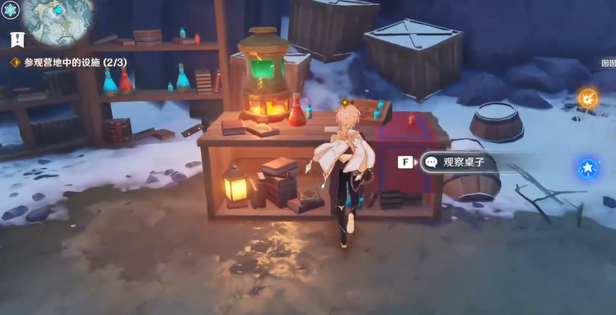 3、參觀營地中的設施(桌子)(總共參觀三個設施)