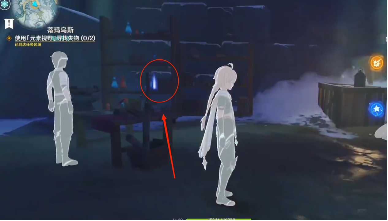 6、使用「元素視野」尋找失物(在如圖所示的書架之上有著藍色的火焰)