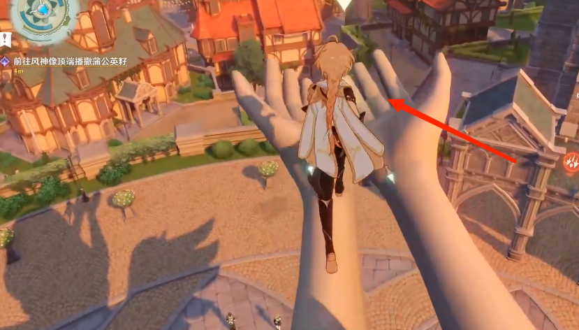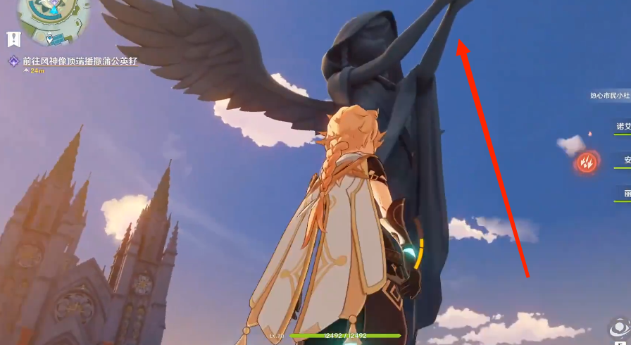 2、爬到風神像的頂端播撒蒲公英籽,再返回和葛羅麗對話。