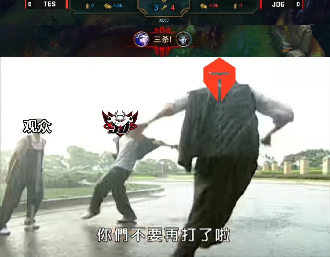 平時都說JDG是LPL最堅固的盾,是一支打法極其穩健的隊伍,然而此次決賽他們卻給所有人展示了自己血性的一面。其中數首局的魔幻一級團最為離譜,雙方野區大戰活生生打了兩分鐘,不死光不上線。以至於觀眾紛紛勸其住手,我們是來看英雄聯盟的,不是來看熱血高校的。