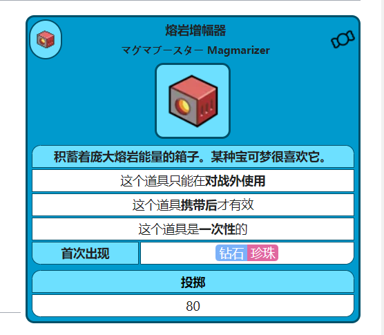 首頁 寶可夢傳說:阿爾宙斯 問答 阿爾宙斯熔岩增幅器有什麼用? 2022-07-15 阿爾宙斯中的熔岩增幅器是積蓄著龐大熔岩能量的箱子,某種寶可夢很喜歡它,鴨嘴火獸攜帶該道具連接交換進化為鴨嘴炎獸。對鴨嘴火獸使用,使其進化為鴨嘴炎獸。