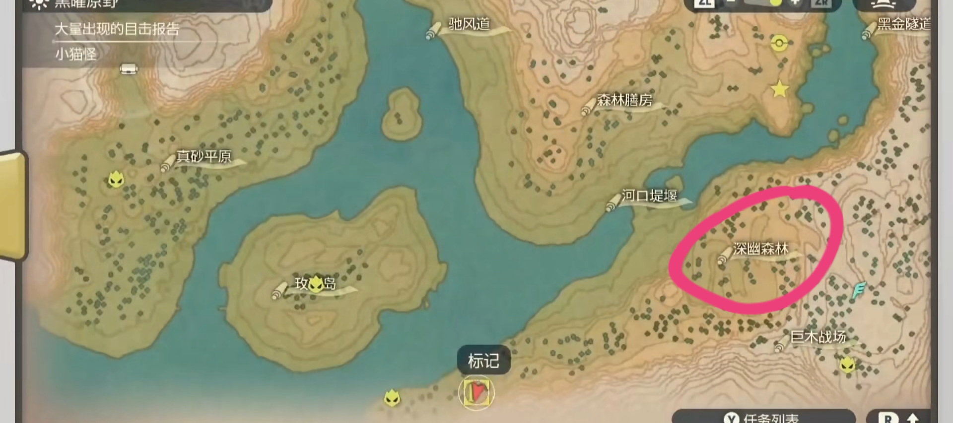 首頁 寶可夢傳說:阿爾宙斯 問答 寶可夢傳說:阿爾宙斯盾甲蟲哪裡抓? 2022-07-17 1.寶可夢傳說:阿爾宙斯盾甲蟲其實是盾甲繭,它主要生活在兩個地方,一個是黑曜原野的荒園開墾地,一個在黑曜原野的深幽森林。2.這兩個地方的具體位置如下圖標記處所示。3.來到黑曜原野的這兩個地方就可以見到盾甲蟲了。