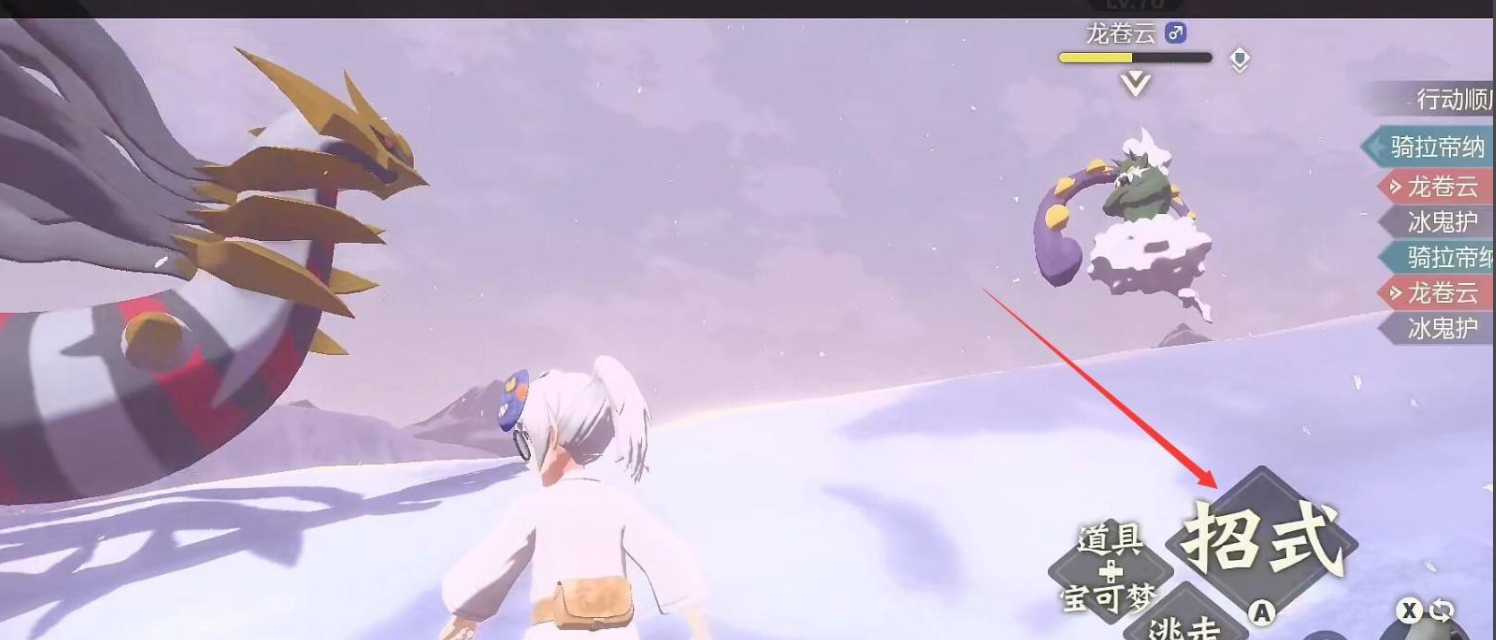 4、觸發與龍捲雲的戰鬥,選擇點擊招式,消耗龍捲雲的血量,剩一點血的時候就可以抓龍捲雲了。
