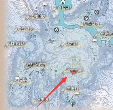 2、開地圖來到下圖箭頭所在的位置(酷寒荒地),如下圖所示。