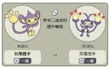 首頁 寶可夢傳說:阿爾宙斯 問答 阿爾宙斯長尾怪手怎麼進化? 2022-07-19 在寶可夢阿爾宙斯中,長尾怪手的進化方式是比較特殊的,如下圖中所示,長尾怪手需要在學會二連擊時提升等級後,才可進化成雙尾怪手。