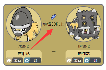 首頁 寶可夢傳說:阿爾宙斯 問答 寶可夢阿爾宙斯盾甲龍怎麼進化? 2022-07-19 在寶可夢阿爾宙斯中,盾甲龍是一隻岩石與鋼屬性的寶可夢,如下圖所示,盾甲龍需要自身等級達到【30級以上】後,才可以進化成護城龍。