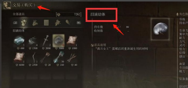 首頁 艾爾登法環 問答 艾爾登法環洗點道具怎麼獲得? 2022-07-20 打開地圖前往首爾要塞北方標注點位置,來到希芙河的入口井,點擊進入,在井裡房間找到商人,點擊交談,通過和商人的對話,即可購買到洗點道具淚滴幼體。