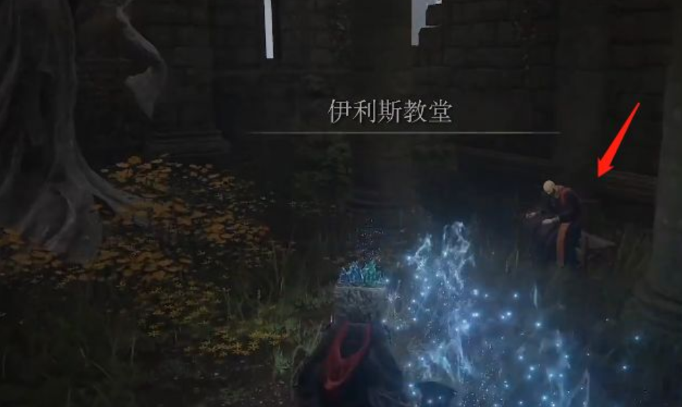 2.其次,到達位置後,進入教堂點擊凳子上的魔法師。
