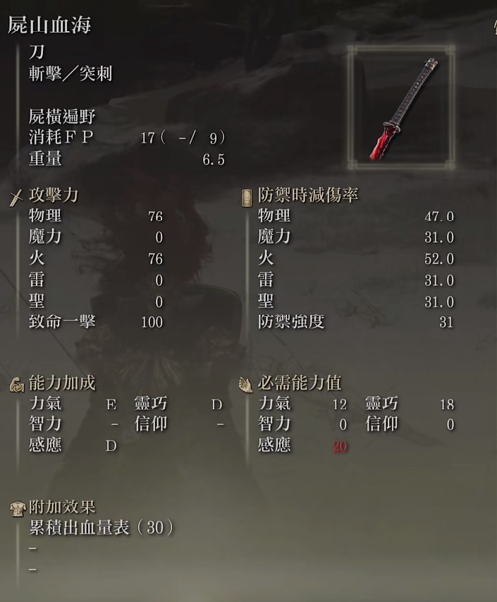 首頁 艾爾登法環 問答 艾爾登法環屍山血海戰技怎麼樣? 2022-07-28 屍山血海太刀的戰技為屍橫遍野。將詛咒之血化為刀刃,形成交叉連擊的戰技。再次發動能使出更多連擊。太刀適合裝備戰士傭兵騎士裝備效果會非常好。