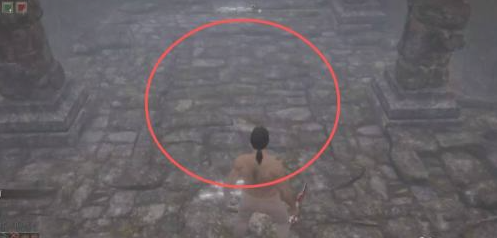 4.找到圖中畫紅圈的位置,用武器擊打地面。