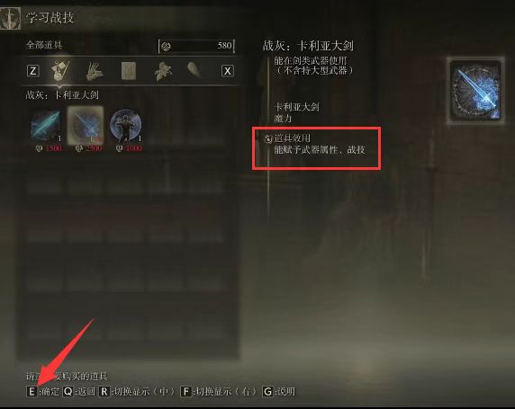 首頁 艾爾登法環 問答 艾爾登法環卡利亞大劍怎麼使用? 2022-07-31 戰灰卡利亞大劍是艾爾登法環能賦予武器屬性的一個戰技,玩家在購買了戰技後,只要使用平時的戰技按鍵就可以使用出戰灰卡利亞大劍戰技。