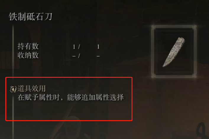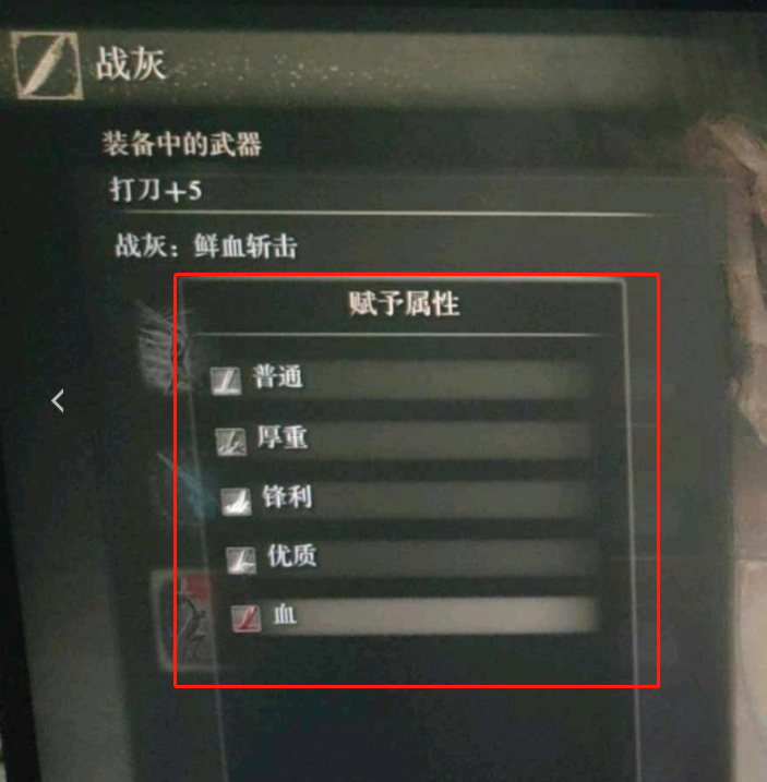 首頁 艾爾登法環 問答 艾爾登法環鮮血斬擊賦予屬性是什麼? 2022-07-31 1、最多賦予五個屬性分別是,普通、厚重、鋒利、優質、血。這五個屬性2、剛拿到手的只有血和普通兩種屬性,去找鐵制砥石刀後附魔可以選擇屬性。去史東威爾城有個武器庫要用石劍鑰匙就可以拿到鐵制砥石刀了。