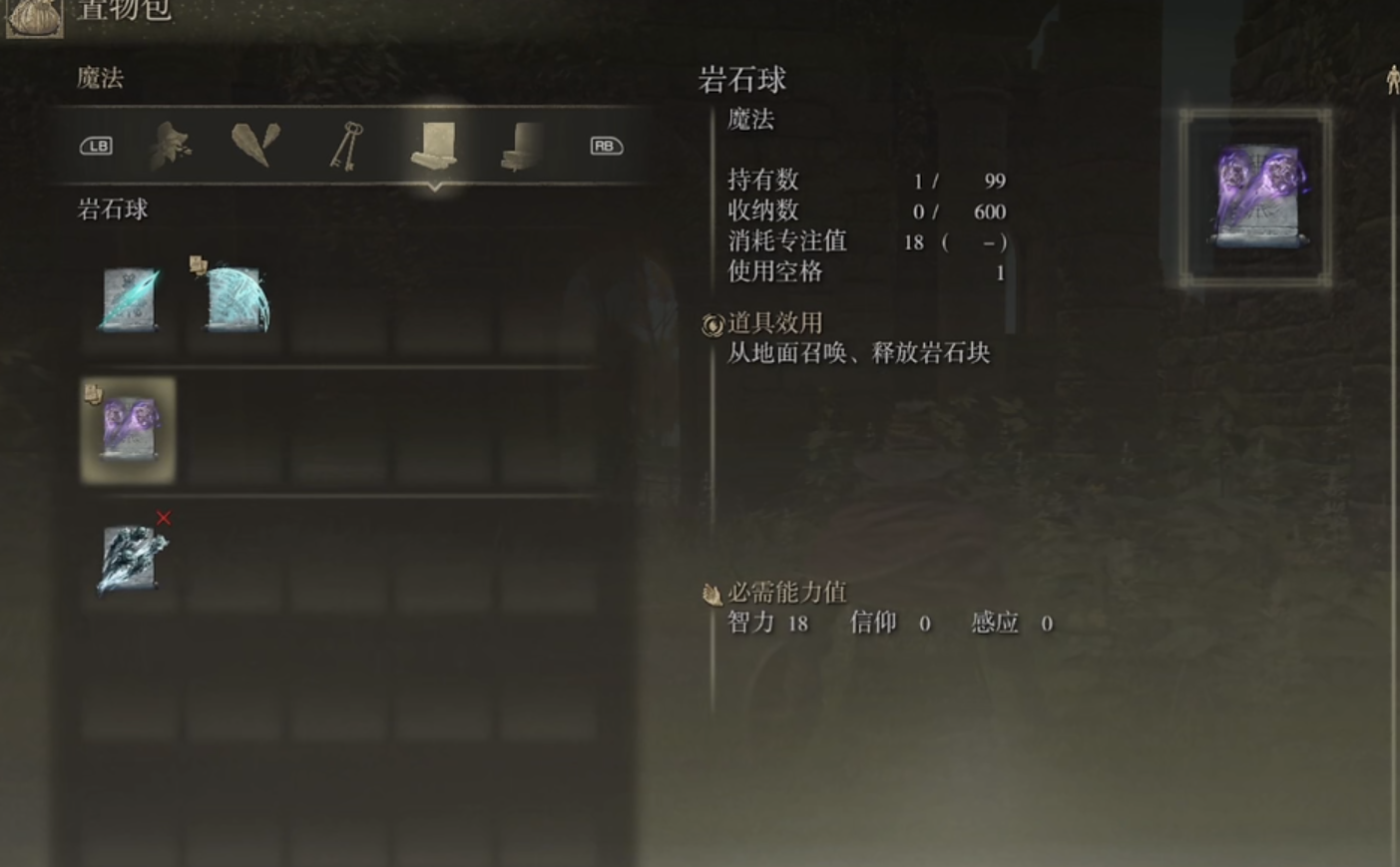 首頁 艾爾登法環 問答 艾爾登法環岩石球怎麼裝備? 2022-07-31 1.首先玩家需要先打開置物包。2.打開後,往後劃找到魔法這一欄。3.最後就可以裝備岩石球,但是裝備岩石球這個魔法,要求玩家的智力要到18.