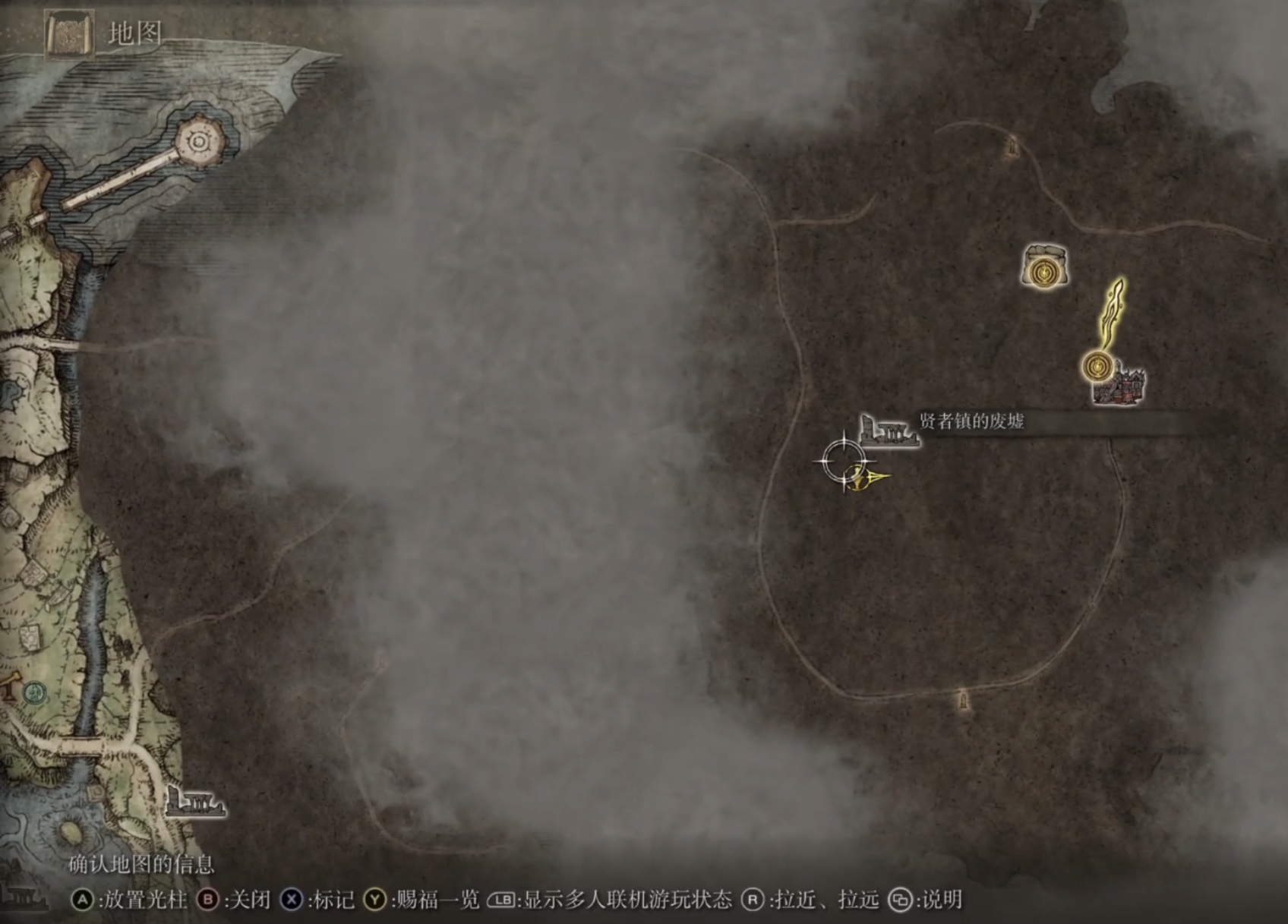 首頁 艾爾登法環 問答 艾爾登法環賢者鎮的廢墟在哪? 2022-08-01 1、艾爾登法環賢者鎮的廢墟在地圖的邊緣地帶,比較荒涼,具體位置如下圖所示。2、點進進入艾爾登法環賢者鎮的廢墟後,你會發現一個洞穴。3、進入之後,打開寶箱你就會獲得岩石球。