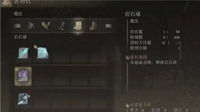 首頁 艾爾登法環 問答 艾爾登法環法師岩石球怎麼裝備? 2022-08-03 1.首先玩家打開遊戲,點擊左側的置物包。2.打開後,找到魔法這一欄。3.最後就可以裝備岩石球,但是要求玩家的智力要到18才可以裝備岩石球這個魔法。