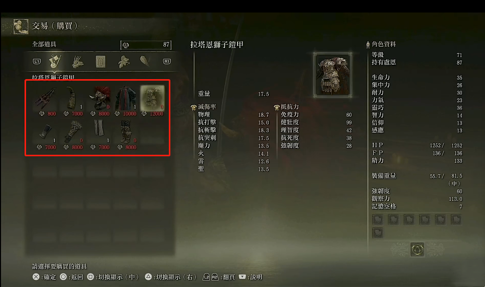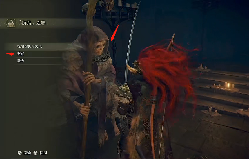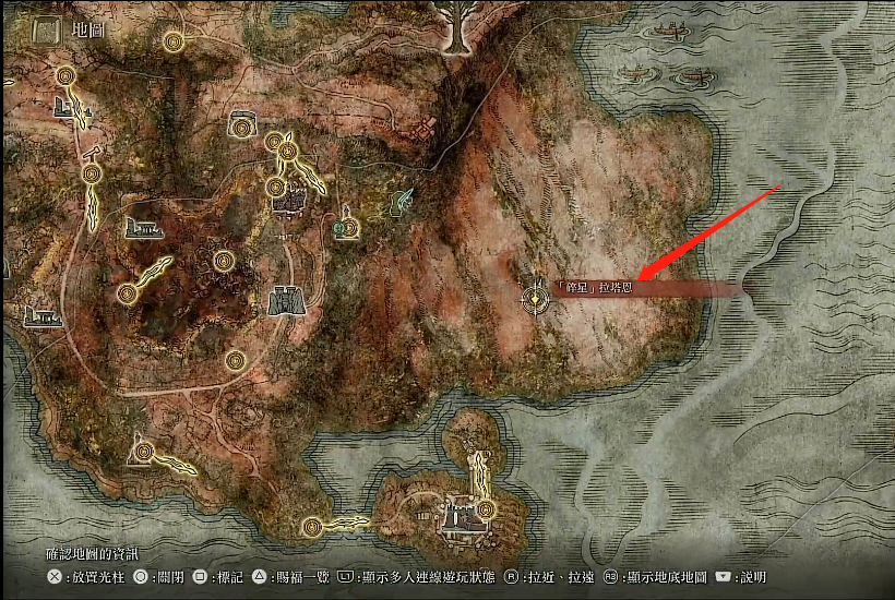 首頁 艾爾登法環 問答 艾爾登法環半神服裝怎麼獲得? 2022-08-04 1、首先,要在紅獅子城,打完BOSS碎星拉塔恩,位置如下圖所示:2、回到賜福點大賜福,位置如下圖所示:3、來到圓桌廳堂,然後往這個方向走這個門,如下圖所示:4、找到這個NPC,5、就可以購買半神裝備了。