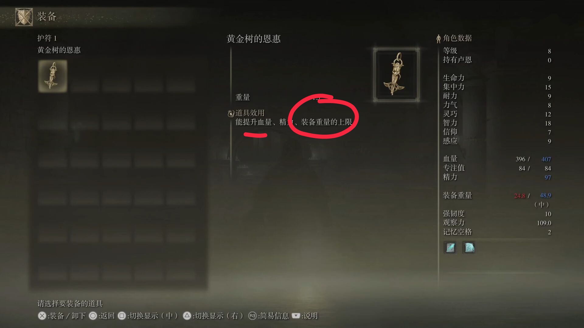 首頁 艾爾登法環 問答 老頭環裝備重量上限怎麼提升? 2022-08-04 艾爾登法環中角色的耐力是直接關係到角色所能裝備的重量上限的,增加耐力是最為方便的方法除了增加耐力,玩家還可以在地圖裡找尋可以增加負重的護符,也可以提升裝備上限,比如黃金樹的恩惠
