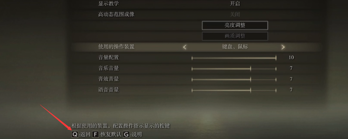 首頁 艾爾登法環 問答 艾爾登法環怎麼退出設置? 2022-08-04 1·首先打開《艾爾登法環》的設置,上面一排選到第三個【顯示及聲音配置】。2·找到下面的【使用的操作裝置】切換到【鍵盤·滑鼠】。3·查看你的左下角,就可以看到【Q】返回,點擊鍵盤的Q就可以退出設置了。