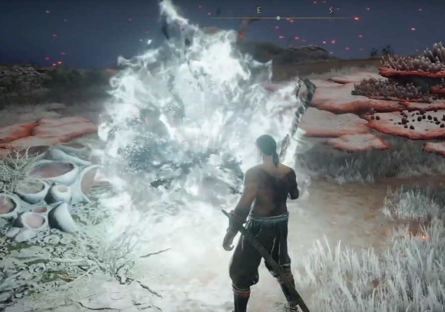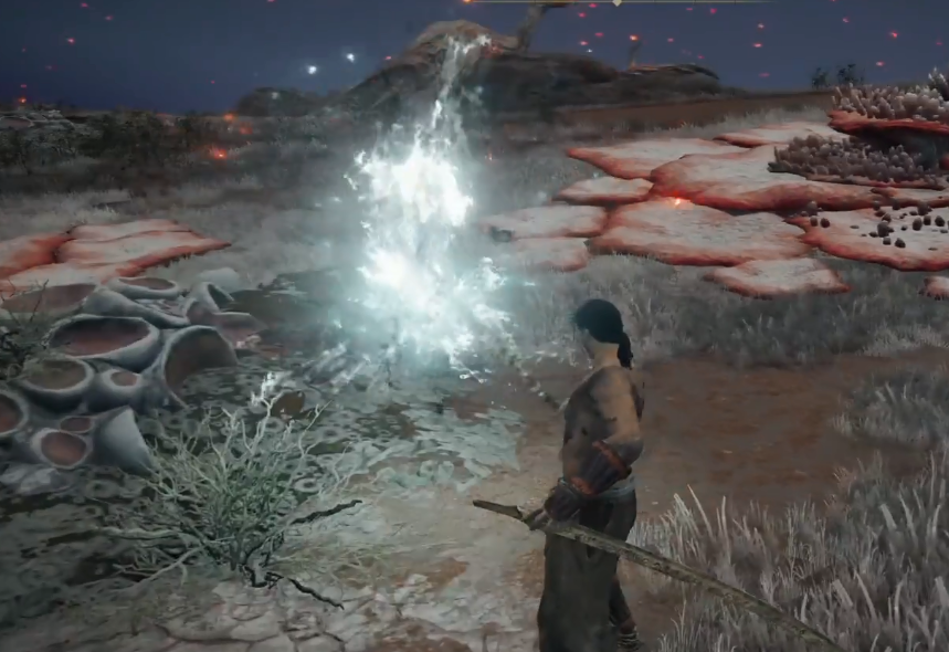 在使用時,釋放戰技後按輕攻擊鍵能往前方地面放出靈火,如下圖,