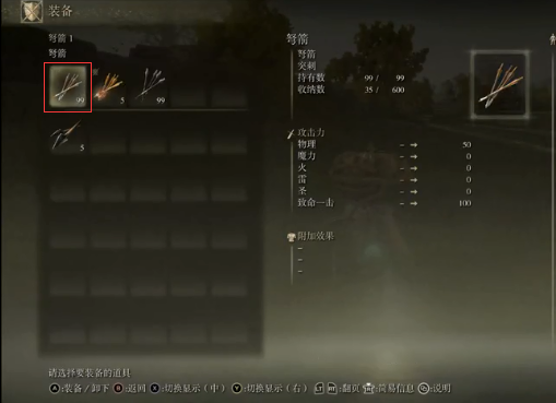1、艾爾登法環弩類武器比較特殊,使用時需要先安裝弩箭,否則無法射擊。