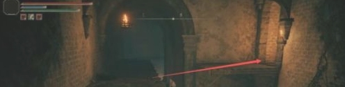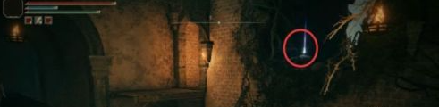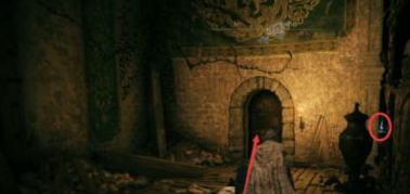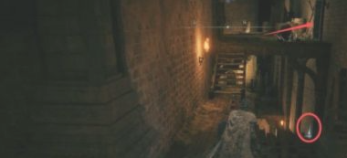 4.屍體上拿到生銹鑰匙,屋內寶箱里拿到曲劍護符。下樓開門,注意右側有物品撿。